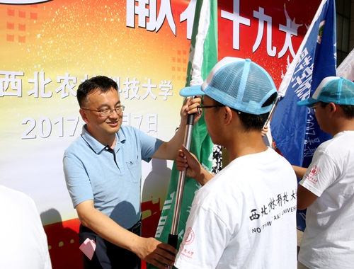 7月7日上午,2017年西北农林科技大学大学生志愿者暑期“三下乡”社会实践活动出征启动仪式在北校区绣山活动中心举行。西北农林科技大学校党委副书记吕卫东、西北农林科技大学教务处、研究生院、宣传部、学工部、团委负责人出席启动仪式,并为志愿者服务队授旗。