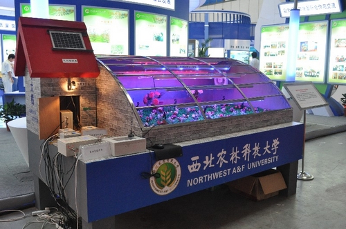 我校展出的“数字大棚”模型由“无线传感器网络监控系统”、“植物智能补光系统”、“智能灌溉系统”、“二氧化碳智能补充系统”构成,以数字化手段实现了温度、湿度、土壤水分等环境因子的远程、实时监控以及植物精确补光、气肥与水分精确补给等功能,从而实现大棚生产管理的信息化与智能化。模型有三个组成系统在我校第五届“挑战杯”大学生课外学术科技作品竞赛获奖,其中“无线传感器网络监控系统”和“植物智能补光系统”均获得陕西省“挑战杯”大学生课外学术科技作品竞赛一等奖。