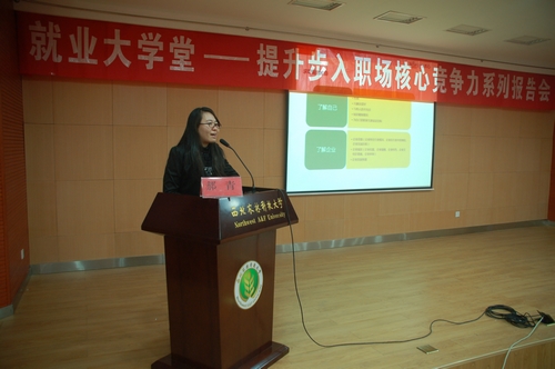 11月1日下午2点,由校就业指导中心主办的就业大学堂之“提升步入职场核心竞争力”系列报告会的第三场报告会——《求职及面试技巧》,在北校区绣山活动中心北报告厅举办。