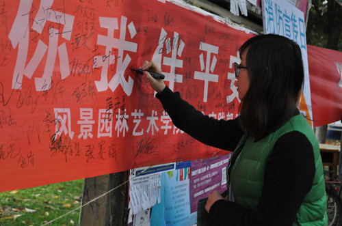 为了全力打造平安校园,进一步提高当代大学生的消防意识,在11月9日世界消防日来临之际,风景园林艺术学院社会实践部在北校区西区雕塑前成功开展了“消防安全齐关注,校园你我伴平安”的消防安全宣传活动。