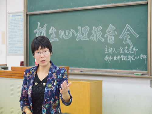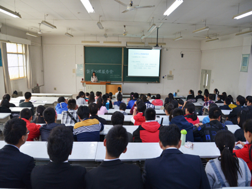 为帮助新生尽快适应大学校园环境和学习节奏,引导学生树立正确健康的生活观念和方式,10月16日下午,经管学院特邀校心理咨询中心武春芳、金花两位老师作新生适应性心理健康教育报告,报告分两场于北校8T教室先后进行,400余名15级新生参加。