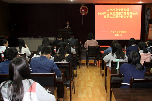 为积极响应团中央“一学一做”的号召,树立典型,弘扬先进,带领广大青年团员以争先创优为动力,增强团组织的凝聚力和号召力,促进学院的中心工作科学开展。4月7日晚,人文学院2016年度五四红旗团支部答辩会暨第17届团分校讨论课在学院模拟法庭举行。