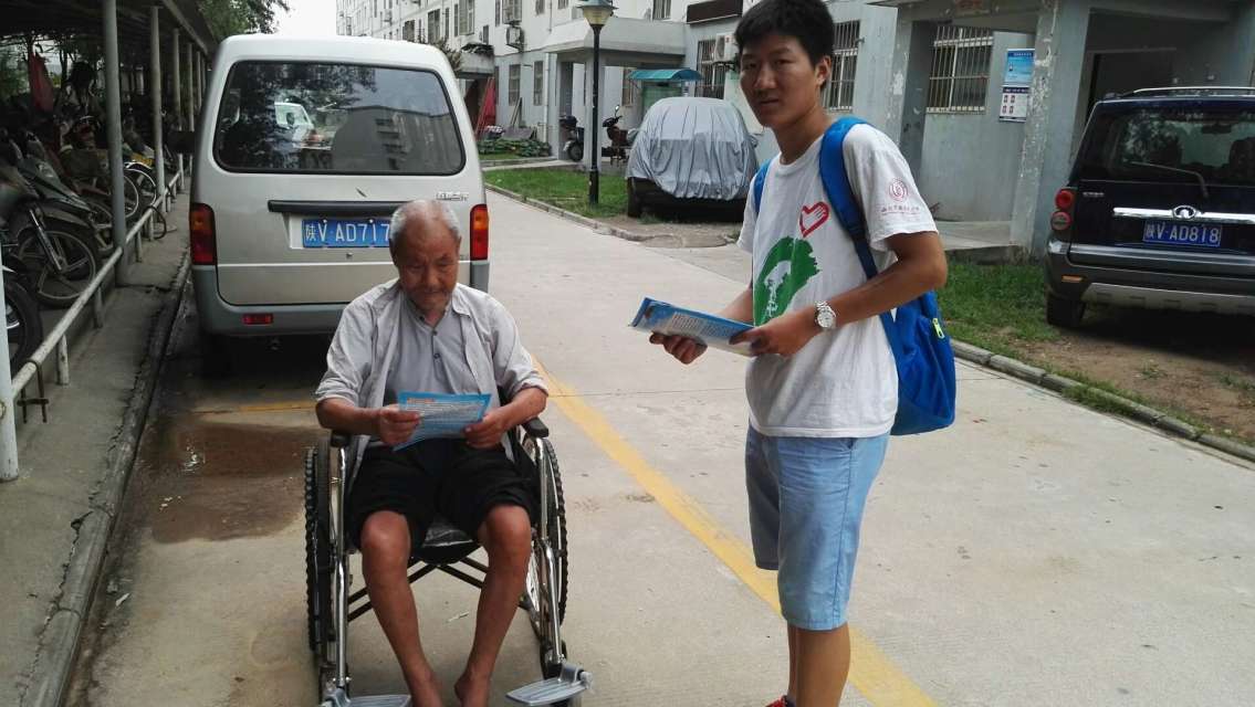 向老人发放传单