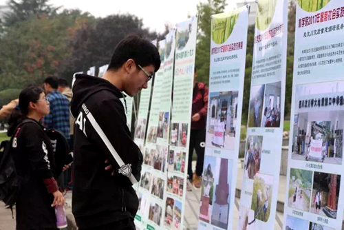 10月17日,由林学院团工委和食品学院团工委主办的2017年暑期“三下乡”社会实践活动成果展在北校区西区雕塑成功举办。两院党委副书记在团工委负责人的陪同下检查布展情况。