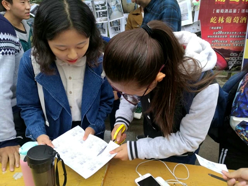 同时为扩大活动影响,向全校师生展现我院学生良好的精神风貌。我院于10月15日在西区雕塑前组织进行了激烈的“拉票”活动,选手们将参赛作品以照片的形式进行展示。“拉票”活动气氛热烈,现场紧张有序,来往师生络绎不绝。