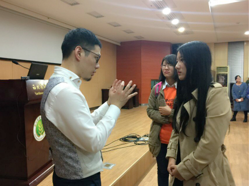 两个多小时的讲解,同学们的热情却丝毫未减 。会后杨耕南老师耐心的逐个回答与会的同学的问题,为他们解除疑惑,走出迷茫,并根据他们的自身特点来提供职业规划。同时参与交流的同学也获得了来自杨耕南老师的礼物。