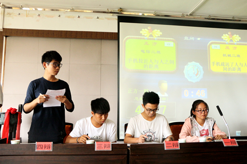 比赛开始后,场上双方辩手你来我往,唇枪舌战,围绕着辩题展开了激烈的辩论。辩论中选手们风度翩翩,谈吐若然。良好的风范、出色的口才、敏捷的思维令场下观众掌声不断。双方毫不相让,时而妙语连珠,诙谐幽默,令人捧腹;时而慷慨激昂,引经据典,掷地有声。经过两天的比赛,机械1702班、机械1703班、机械1705班、机械1707班、机械1708班、机械1710班和机械1712班这七个班级代表队凭借着出色的反应能力和严谨的逻辑成功晋级。