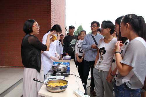 我院老师和同学于9日下午16:30-18:00在南校区园艺楼下参加了黄桃的品鉴会,并领取了科研黄桃。活动现场共分为两个模块,其中一个模块是为广大师生现场发放新鲜的黄桃,另一模块是何玲老师带领研究生现场演示黄桃罐头、黄桃酸奶的制作方法,并供参观人员品尝。