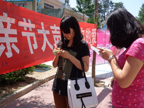 一曲《感恩的心》让广大学子驻足;一张小小的祝福卡片饱含了对父母深深的爱;一个工工整整的签名体会到了父母的艰辛与不易。活动过程中,志愿者向广大学子发起倡议,给父母打电话,报平安;在校期间,努力学习,提升素质,用优异成绩回报父母的日夜牵挂。