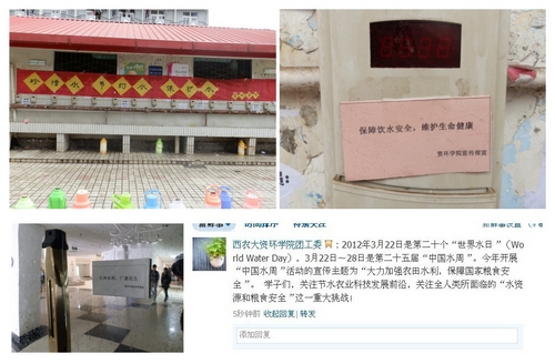 3月22日是每年一度的“世界水日”和“中国水周”宣传活动日。资环学院组织开展了以“节约用水•点滴做起”为主题的系列宣传活动。
