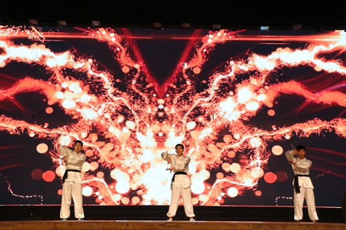 节奏鲜明、动感十足的开场舞结束后,由席新明老师表演了戏曲《状元媒》,字正腔圆、铿锵有力的戏曲节奏将全场的氛围带动起来,同时也让同学们体会到了戏曲文化的魅力。由老师和学生代表带来的朗诵《春华秋实·岁月如歌》,以生动形象的文字、感情充沛的语调回忆了光辉的奋斗岁月,倾情讲述了我院七十年来的发展历史,让在场的学生们对院史有了更为深入的了解。随后是精彩的腰鼓表演,雄浑壮阔的鼓声与活力充沛的舞步相结合,赢得在场观众的阵阵掌声。