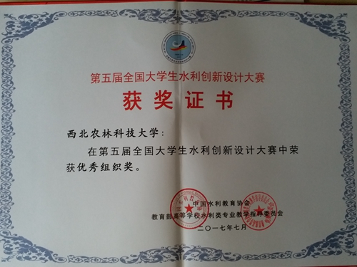 7月20至22日,由中国水利教育协会、教育部高等学校水利类专业教学指导委员会主办的第五届全国大学生水利创新设计大赛在大连理工大学隆重举行。由我校水建学院选派的三支代表队分别取得特等奖一项、二等奖两项的佳绩,同时我校被授予“优秀组织奖”荣誉单位称号,指导教师吴普特研究员、张林副研究员获得本届大赛“优秀指导教师”荣誉称号。我校水建学院蔡焕杰教授受邀担任本届大赛评委。