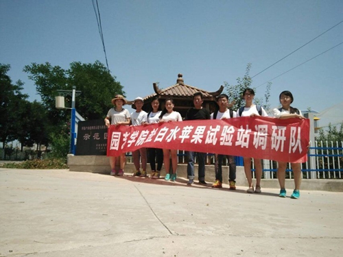 7月6日早上六点,园艺学院赴白水苹果试验站调研队的七个成员从西农北校出发,于下午两点成功抵达西北农林科技大学白水苹果试验站。,西北农林科技大学白水苹果试验站创建于2005年,是目前国内唯一的苹果专业试验场站,苹果试验站占地10.5公顷,包括综合办公楼、种质资源区、品种选育区、栽培试验区、新品种及栽培新技术示范展示区和技术服务中心等,总投资1000余万元。苹果试验站聚集了西北农林科技大学苹果学及相关学科的骨干技术力量20余名,其中80%以上具有高级技术职务。按照学科交叉、国际高水平的目标,集成果树学、食品科学、植物保护、资源环境等学科优势,促进苹果成为国际一流学科,为西北农林科技大学向世界知名的高水平研究型大学和双一流迈进作出了巨大贡献。