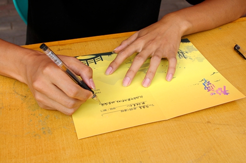 全校学子以饱满的精神面貌积极参加了本次活动,正值毕业季,毕业班学子参与本次活动的热情也愈加高涨。本次活动面向广大师生群体,活动期间,现场工作人员为所有参加者提供了由本校学生精心设计的“感谢师恩”明信片。在2017年教师节步入80天倒计时之际,它激励所有即将毕业的西农学子,以最独特而又最朴素的方式绵延青春的印记与大学的回忆。每一名参加活动的学子都郑重地走进现场,以笔墨代替言语,纵然素纸万卷婆娑不出对师长的滚滚深情,他们依旧奋力地向心中那位最可敬、最怀念的恩师倾诉出源自内心深处的真挚悸动。一字一句,一笔一画,一张张烙印着西农独特字样的卡纸被镌刻出莘莘学子内心最想遥寄的祝福。活动承办方即校学生会将为所有参与者保存自制明信片,并且将在八十天后的教师节亲手送予各位老师,为他们献上最美好的节日礼物。
