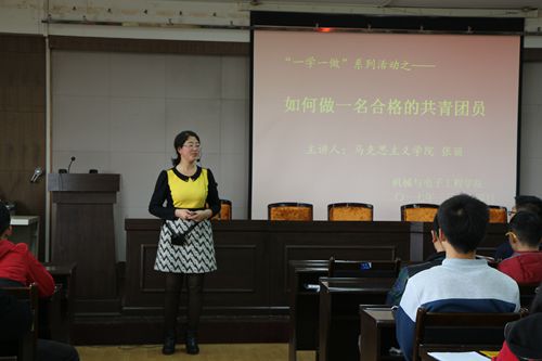 为深入学习“一学一做”精神,增强广大学生的思想政治理论素养,3月25日下午4点,机电学院团工委于院办三楼组织召开第十七期团分校之“如何做一名合格的共青团员”的团课。本次团课邀请到马克思主义学院张丽老师作为主讲老师,团工委书记马香丽老师和240余名学生代表共同参加了本次团课,学习领会团学理论知识。