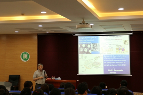 感受科学精神,分享科学智慧,第四届研究生学术文化艺术节之名家讲坛开讲,首场讲座于4月25日晚7点在南校区绣山活动中心114报告厅成功举办,活动成功邀请到了我校“人才项目专家”Melvin T. Tyree 教授担任主讲,本次活动由研究生院、研工部、团委、校研究生会主办,林学院研究生会承办,全校逾百名研究生聆听了讲座。