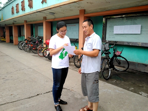 问卷打印完毕之后,队员们兵分多路,对问卷进行分发。为了保证问卷受众比例平均,队员们选择了不同的地点进行分发。居民小区、商业步行街、老年活动中心、大学校园、工厂企业等等地方都能够看到队员忙碌的身影。为了能触及范围更广的受众,队伍同时设立了电子网络问卷,在保定地区网友范围内进行转发,达到了良好的影响。