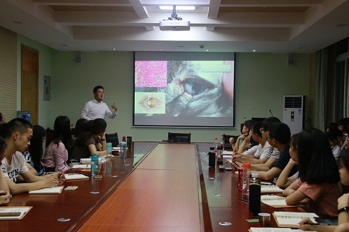 为进一步加深我院学生对宠物医疗行业的认识和了解,促进引导学生的专业学习,6月13日晚,我院特邀请瑞鹏宠物医院知名专家李晋飞在学院4143会议室举办《如何开展犬猫临床眼科疾病的诊治工作》专题讲座。全体瑞鹏班学员及其他50余名同学参加了此次讲座。