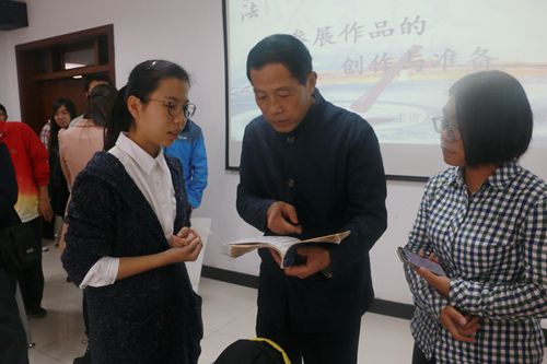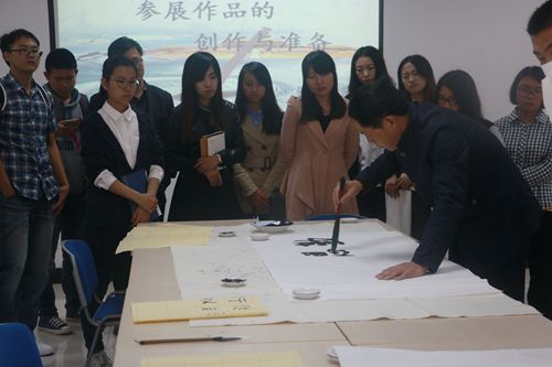 下午两点,蒋老师在北秀山活动中心206室进行了参赛作品的创作与准备有关讲解,参加报告会的同学们都带齐了笔墨纸砚,认真倾听蒋教授的讲解。