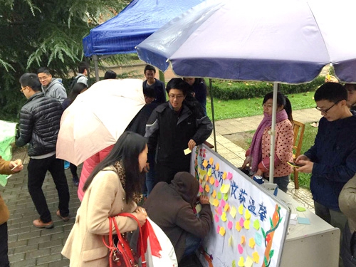 本届大学生节以倡导文明生活为目的,包括宣传文明生活、征集文明标语、抽取文明之星、筛选文明宣言、张贴文明标识牌等六个环节。活动现场,研究生会成员们通过张贴条幅的形式宣传文明生活。征集文明标语活动也吸引了大批师生参与活动,活动第一天就有150人参与了文明标语的征集活动。同学们积极互动,踊跃参与,气氛热烈。