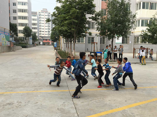 下午,阳光团员们带领学生们在社区前进行文体活动。学生们在阳光团员的带领下进行老鹰捉小鸡的游戏,非常欢乐。随后又进行了你画我猜的游戏,学生们在此游戏中也表现出高度的积极性,最后表现突出的队伍赢得了奖品。活动结束后,阳光团员与学生互道再见后赶回学校。期待下次支教,为学生们带去更多的知识与智慧。