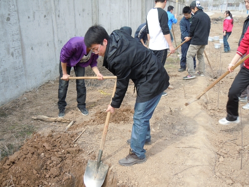 同学们热情高涨,积极踊跃的参与活动,在准备好树苗、工具之后,迈着豪迈的步伐向目的地进发。在学生干部的带领下,大家分工明确,各司其职,有条不紊的开始行动。林学092班的同学把这片树林作为班级的 “爱心树林”,他们希望能够把爱心延续,让这片绿色永存。