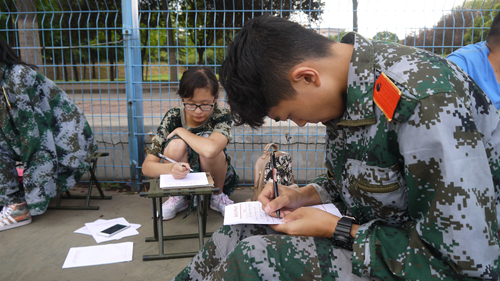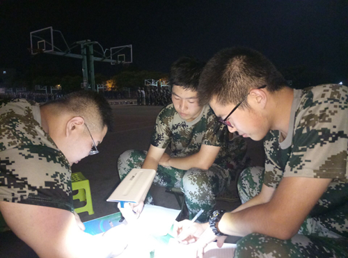 “你背单词都用什么软件?”“百词斩。”“扇贝。”队员们在休息之余,还不忘讨论学习。虽然大家没能得到身体上的锻炼,但精神上已经接受过锻炼了。激发爱国热情,培养艰苦奋斗、刻苦耐劳的坚强毅力和集体主义精神,形成良好的学风和生活作风,显然,飞虎队在训练场上正接受着这样的教育。