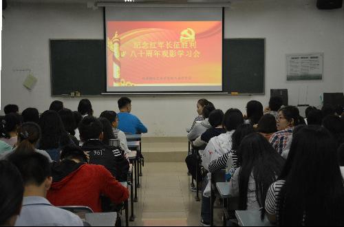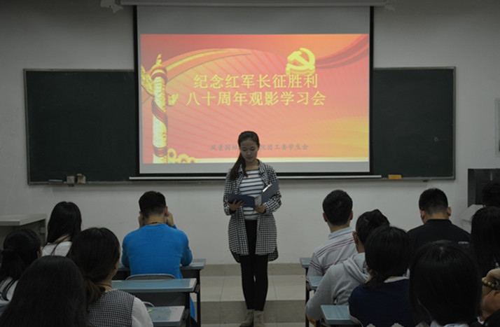 为庆祝中国共产党成立95周年、红军长征胜利80周年,广泛开展爱国主义宣传教育、讴歌党的光辉历程、发扬党的优良传统、继承和弘扬“长征精神”,风景园林艺术学院于2016年9月21日晚在南校区2号教学楼举行“纪念长征胜利80周年”团课观影课。