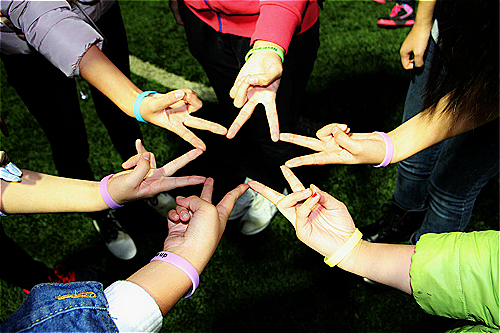 10月24日,TALK空间运行部为参加TALK跑团活动的每一位同学发放荧光手环,五颜六色的手环映衬着大家的笑脸,田径场上发出阵阵嬉笑声。分发结束后,TALK跑团所有成员带着荧光手环,拿着跑团的队旗在草坪上留下了珍贵的合影。