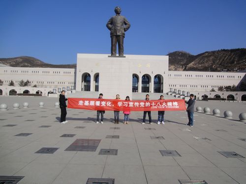 为响应学校《关于开展“走基层看变化学习宣传党的十八大精神”主题寒假社会实践活动的通知》的号召,人文学院学生按照就近就便、团队协作的原则组建了“红色之旅”学习实践团,利用假期在延安开展“红色之旅”学习实践活动。活动历时三天,达到了预期效果。