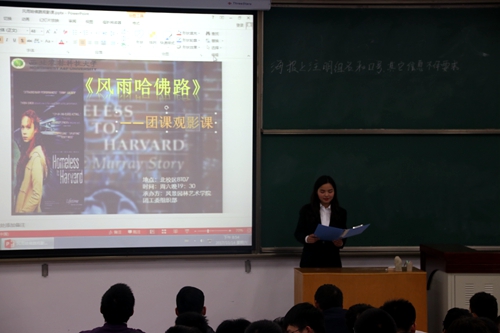 这次观影课用励志的影片教会了大一新生许多道理,也为同学们敲响了人生勿要庸碌颓废的警钟。风雨哈佛梦,虽坎坷却绚烂的人生路,用乐观、积极的生活态度和顽强不懈的意志诠释生命,绝不放弃,美好的明天等着新时代的同学们去创造。
