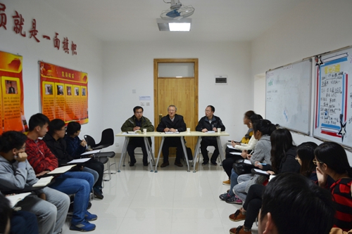 本着“务实求真“的作风,在简短介绍座谈会主旨后,田霄鸿教授让大家畅所欲言,提出同学们在学习生活中存在或遇到的突出问题。地规141班的周全武同学说:“进入大学后,不能很好适应大学生活,没有尽快确立目标,参加了许多社团活动,没有合理分配好时间。”随后,同学都积极地进行了发言,就专业课程设置、升学出国选择、师生交流平台等问题与院领导进行了讨论交流。