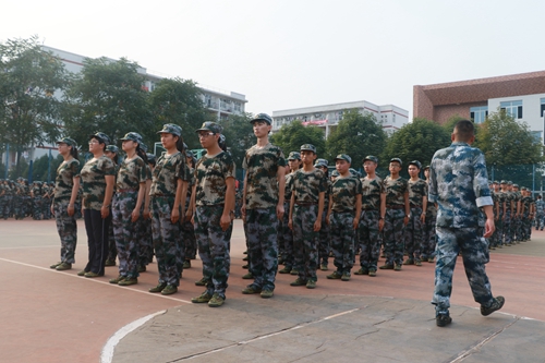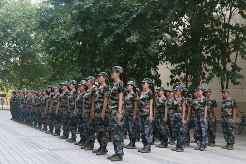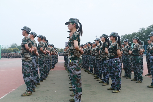 挽起心爱的长头发,放弃美美的新头饰,抬头、挺胸、腰板笔直、目视前方。“站成一条线,连成墙一面”,训练场上的女生们一扫平时的公主气和男生们一起接受训练任务,半个小时的预热军姿没有一个人主动要求退出。身姿挺拔,俨如一朵朵铿锵玫瑰,形成了军训场上一道靓丽的风景线。