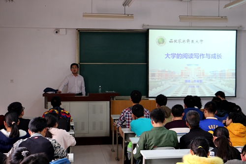 为激发当代大学生的阅读兴趣,提高学生公文写作水平并锻炼其写作能力,10月19日下午,葡萄酒学院特邀校团委副书记李春祖老师就关于公文写作“大学的阅读写作与成长”这课题作做了精彩的学习报告。我院团工委书记赵星宇老师,辅导员李雅男老师以及16级全体同学应邀出席。