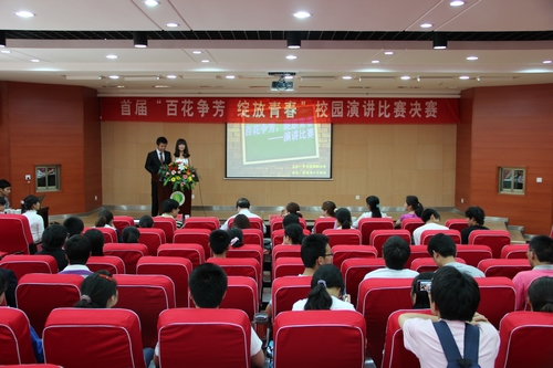 5月29日下午,首届“百花争芳,绽放青春”校园演讲比赛决赛在北校区绣山活动中心报告厅举行。中国演讲与口才协会副会长颜永平、团委书记刘瑞明出席比赛,思政部、学工部、宣传部有关同志出席比赛并担任评委。