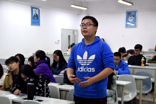 在学习会上,主持人先带大家了解了今年两会上李克强总理关于创业的观点以及相关政策。随后同学们就高考改革制度进行及其影响进行了讨论和思考,互相交流看法感受。教育部部长袁贵仁就“教育改革和发展”的相关问题如教育年限,择校热等发表的讲话,引起了同学了同学们热议和关注。