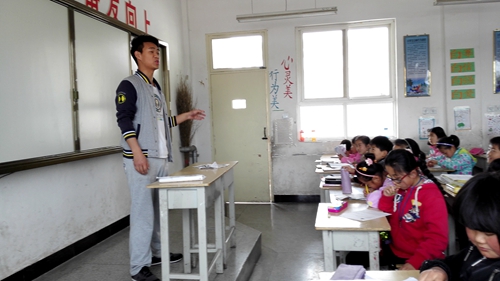 每次支教活动放学前半小时,两位村助会在8个班随机抽取一个班级举办小活动,活动的前五名会获得印有西北农林科技大学风景的精美书签一个。有一次抽取的班级是四年级二班做一个读书感想的活动,活动开始大家都想得到书签,但却羞于上台演讲。经过志愿者的示范,终于有一位同学自告奋勇的走上了讲台,伴随着掌声开始了她的自我介绍与感想分享,接下来第二位、第三位……,课堂气氛越来越活跃。最后由两位村助评选出了五位较为优秀的同学并赠送了精美书签。活动中印象最为深刻的是一位小朋友最后的总结,“这个故事使我明白了人不应该贪婪,要脚踏实地,知足常乐”,她的话发人深省。
