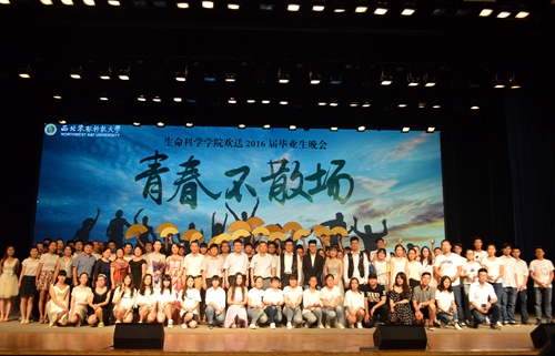 表彰大会结束后,晚会由一个记录着毕业生们从大一到大四经历过的点点滴滴的开场视频引起全场生命学子共鸣而拉开帷幕。晚会的节目几乎都由毕业生完成,在属于自己的晚会中,他们将情感融入节目,表达着毕业的复杂心情:从诗朗诵字字句句间的感恩与不舍;到小品《与青春有关的日子》对大学生活的纪念;再到毕业生吴昊的原创曲目《记着》,用舒缓的旋律记录他们在西农生命的青春岁月,记着熟悉的老师伙伴和理科楼的日子。