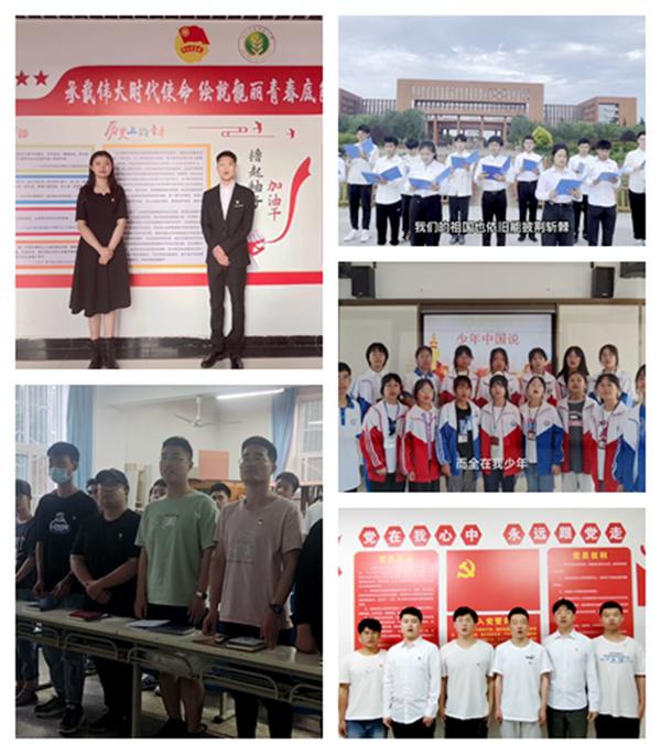 “怒发冲冠,凭栏处、潇潇雨歇。抬望眼,仰天长啸,壮怀激烈……”水工本科生第一党支部在南校区党员活动室配乐朗诵岳飞的《满江红》。“吾愿吾亲爱之青年,生于青春死于青春,生于少年死于少年也……”水资本科生党支部3名党员在南校苦楝广场男女轮诵李大钊创作的诗歌《青春》。“在我的一生中,所有的身外之物都能割舍。唯一不能割舍的,是我亲爱的祖国……”农水研究生第五党支部在水科所学习室集体朗诵屈直创作的《祖国万岁》。