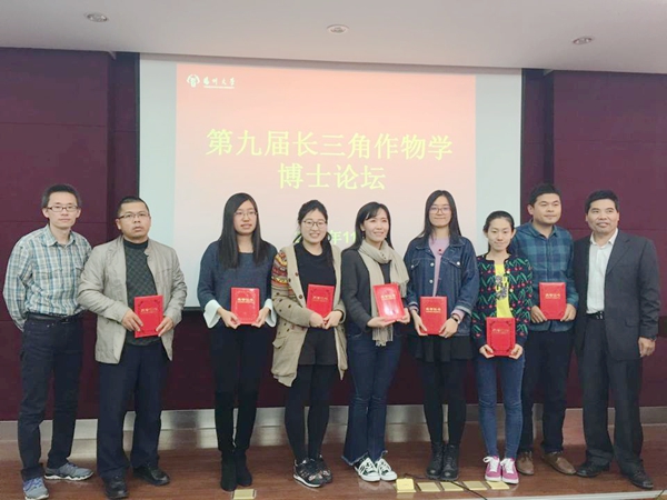 11月5至6日,由浙江大学、南京农业大学、扬州大学承办的“第九届长三角作物学博士论坛”在扬州大学隆重召开。来自浙江大学、南京农业大学、扬州大学、西北农林科技大学、东北农业大学、山东农业大学、塔里木大学7所高校的师生代表150多人参加了本次论坛。本次论坛共征集到论文52篇,其中26名来自不同学校的博士生作了精彩的报告。我校农学院郭媛老师和5名博士生参加了本次论坛,李婷婷博士获得报告优秀二等奖,邓平川博士获得报告优秀三等奖,黄谦心博士获得优秀海报奖。